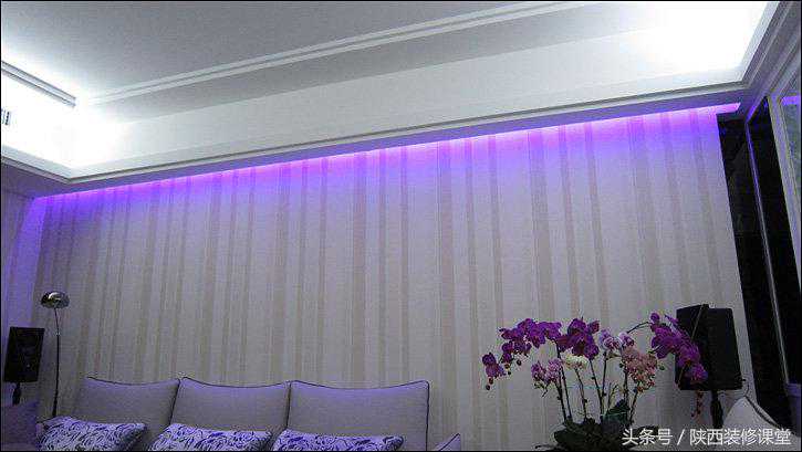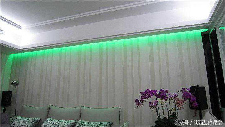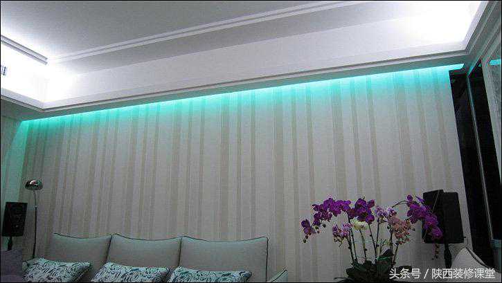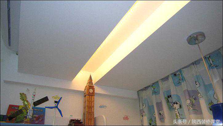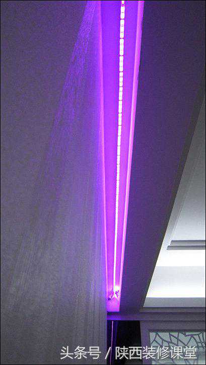 喘口气,呼……到天花下面看看LED灯带在藏光槽中的样子。