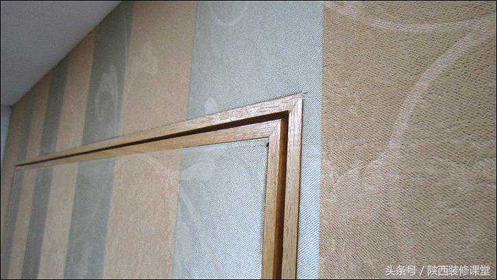 再近一点点,门框和门板上的墙布都被木线条紧紧压住。