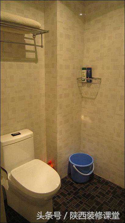 淋浴间内外的地砖虽然是一样的,但做的时候可是先贴轨道石条,再将地砖仔细裁出曲线边缘贴上去,这师傅的手艺还是很好的。