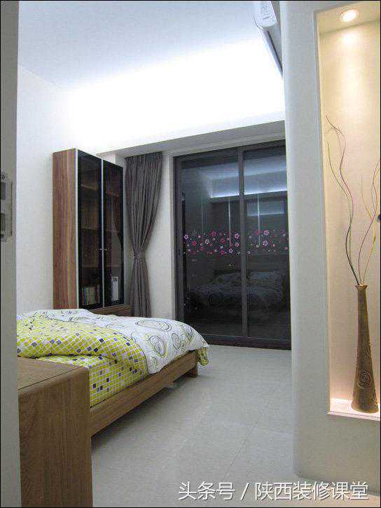 推开主卧房门,迎面而来的是衣柜侧面的艺术造型,这个地方的木工制作、喷漆都非常麻烦,花费不少。一直没找到适合的摆件,所以只好暂时放个水晶玻璃物件上去,明显太小,网友们如果有好介绍一定要告诉我哈。