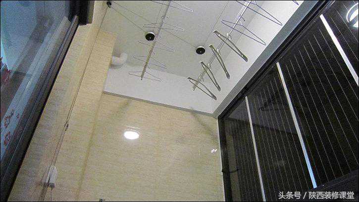 换个角度可以看清插座与龙头的位置,最左边的晾衣架的升降控制。