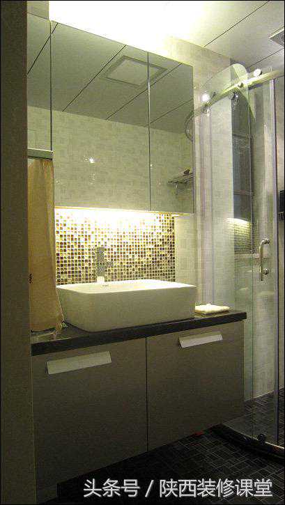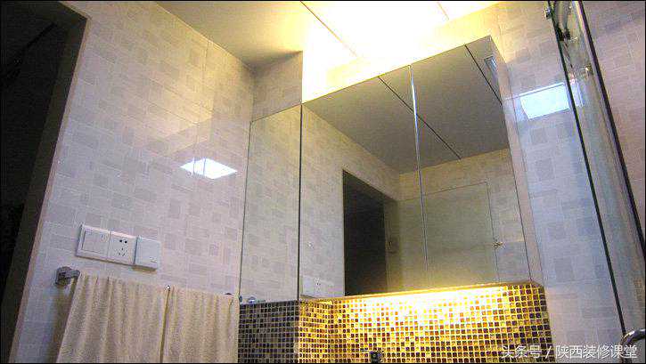 上面的镜柜可以放电吹风、药品等东西,柜子上下安装T5暖光灯管。