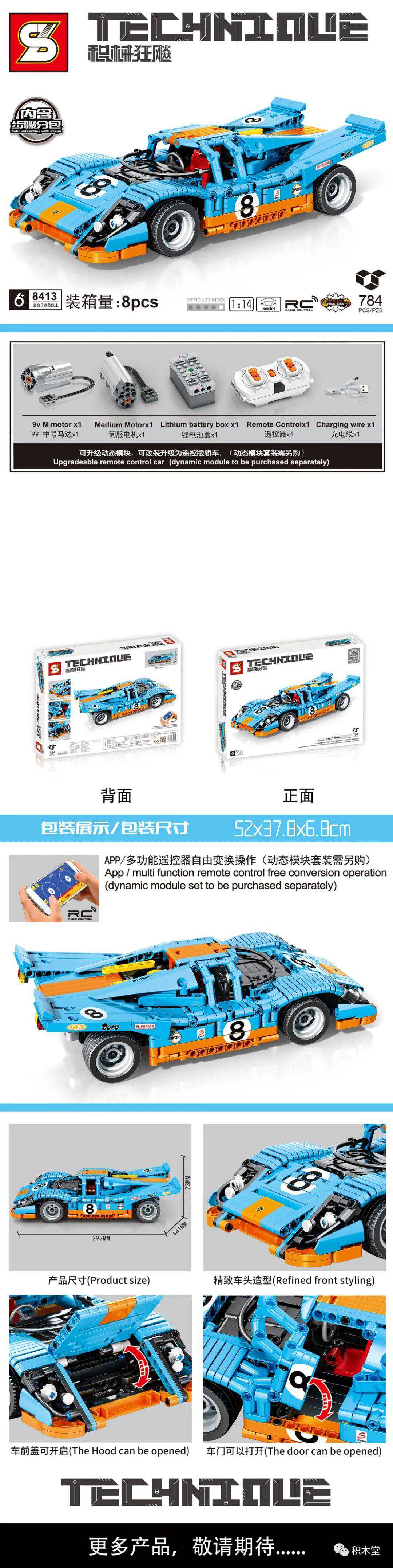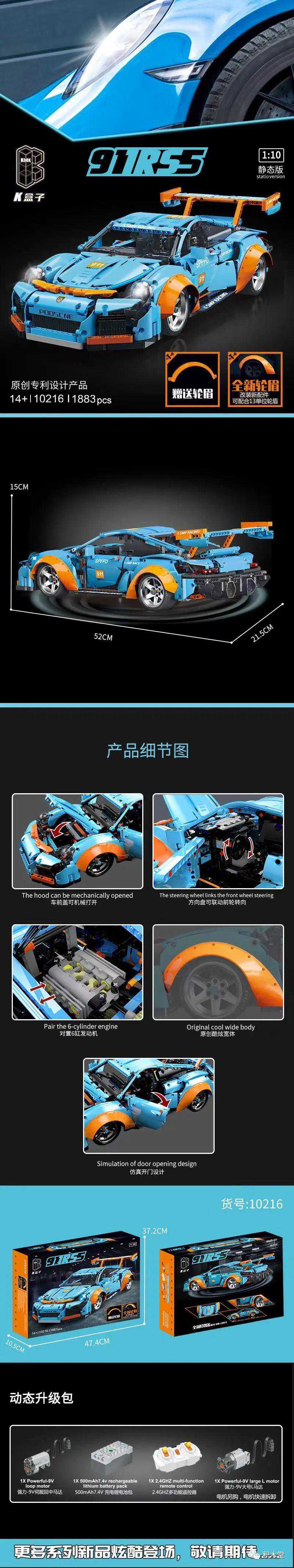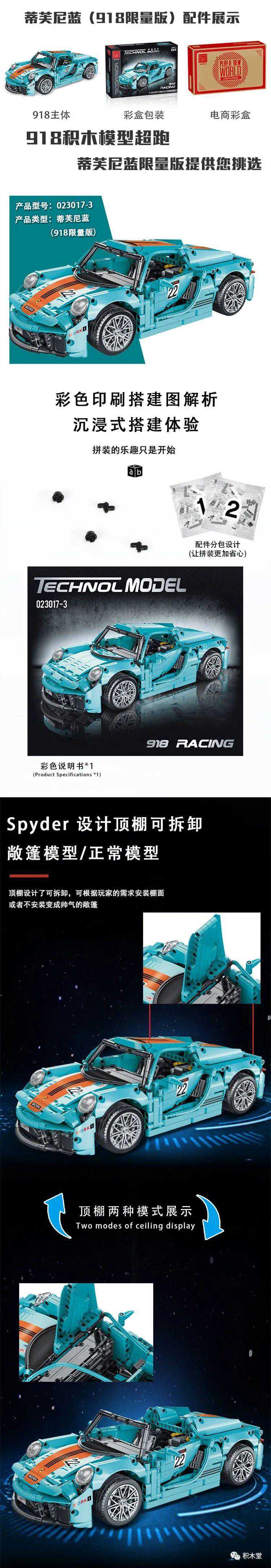 11款,以积械狂飚一个系列,不停出跑车,其中的二台1:8跑车是作者授权,很好看!