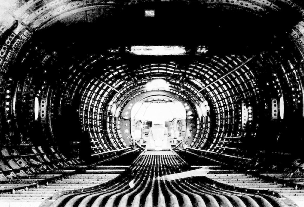 最显著的特点是,这架飞机有一个两层的加压舱,略窄的底舱同样用于载客。