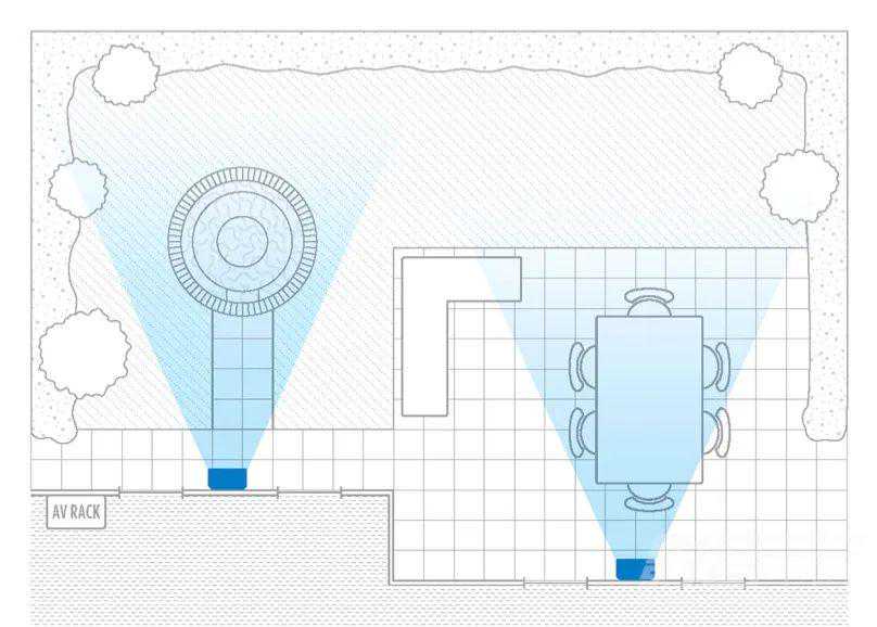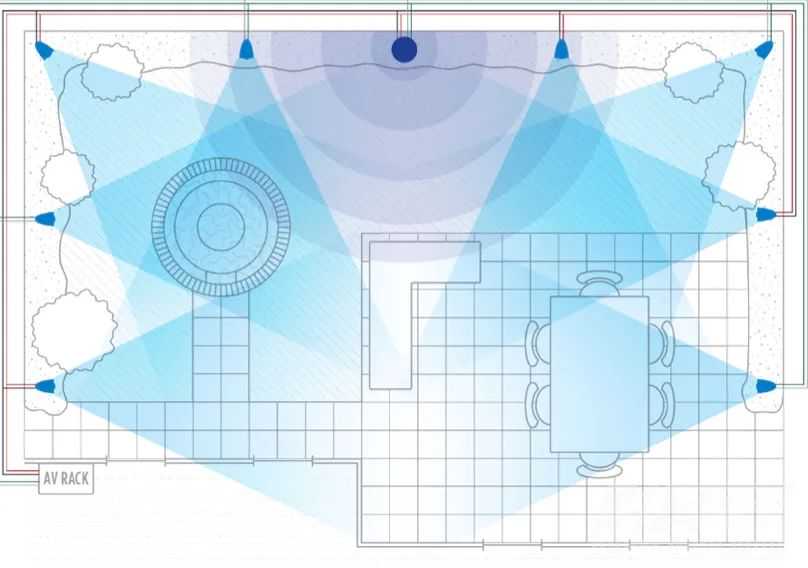 当然,这并不意味着对声音效果就没有任何追求,作为一个良好的设计,它基本上需要秉承两个要求:声音在花园空间里实现“均匀覆盖”,而不是呈现出明显的波谷;尽量避免干扰到相邻的空间,比如邻居家,这就涉及所谓的“分布式布局”。