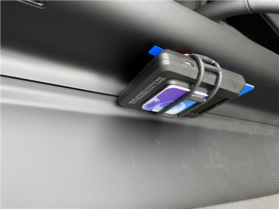 然后主机背面找个位置车的中间位置这个位置不挡音响太阳也照的到能给ETC充电。