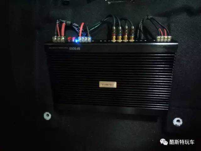 卡莱bf8000四路功放安装在副驾驶座椅底下,不占用空间,方便调试。
