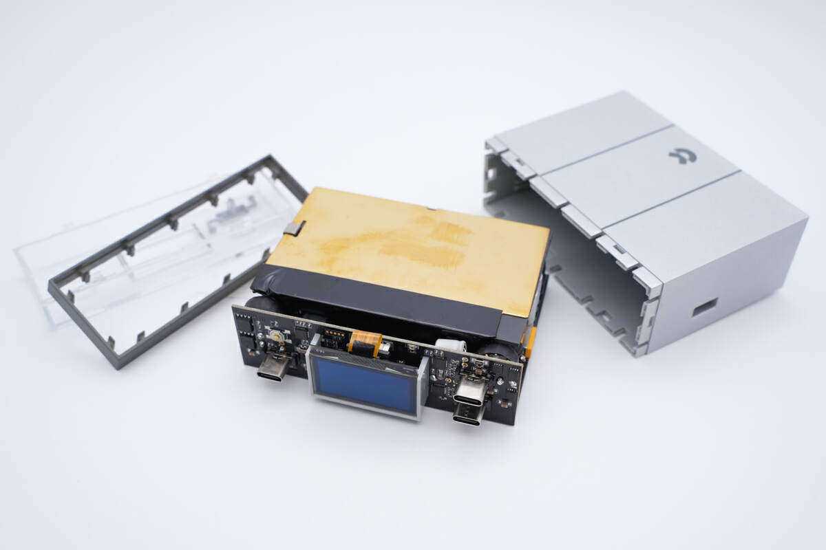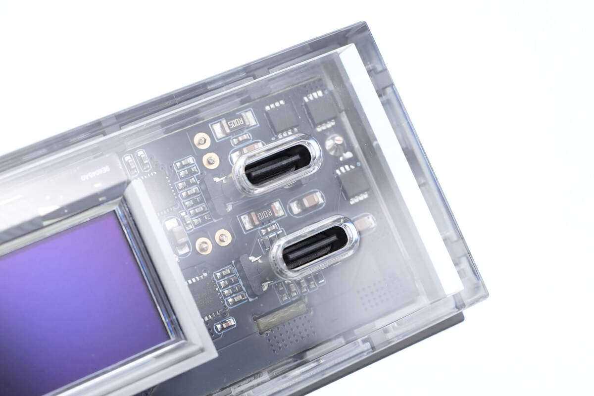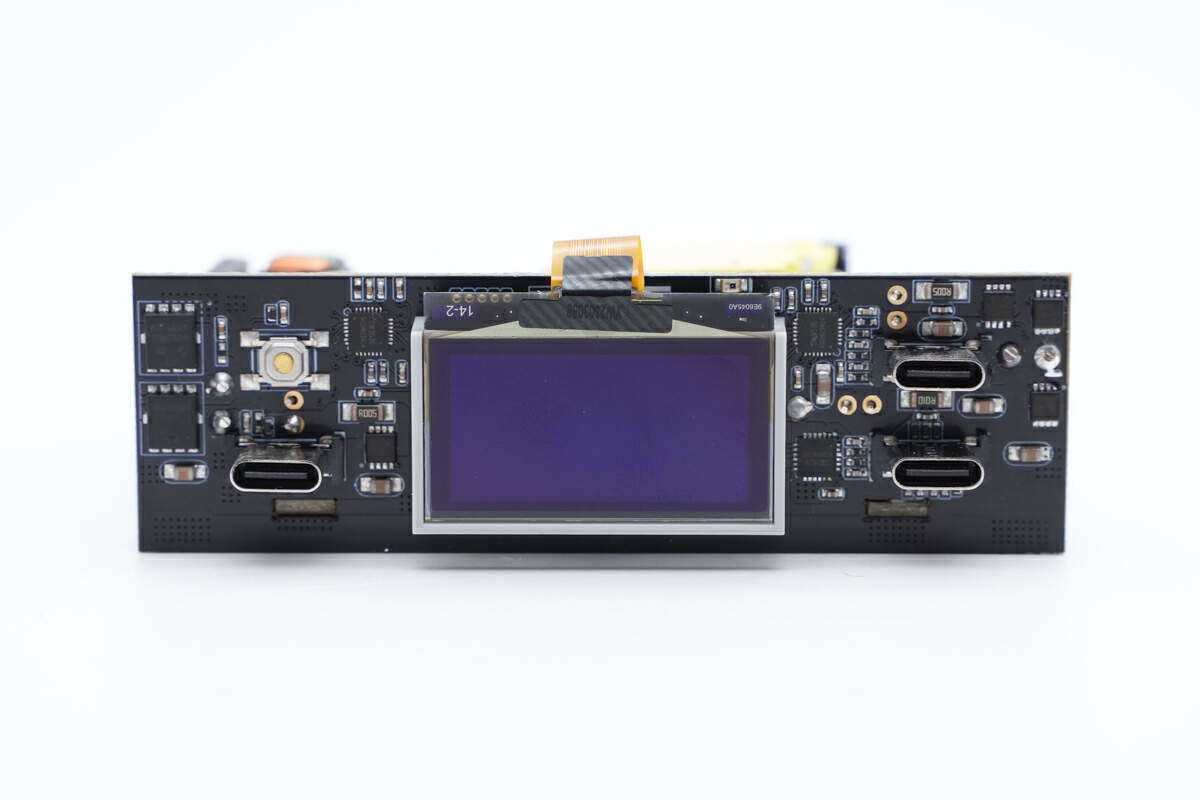 输出降压方面采用两颗智融SW3536搭配一颗智融SW3526进行降压输出,使用的降压开关管与VBUS开关管均来自华羿微,并使用一颗MCU进行输出功率读取及功率分配控制,输出至OLED屏幕显示。OLED屏幕还支持根据环境光调节亮度,使用体验更加优化。