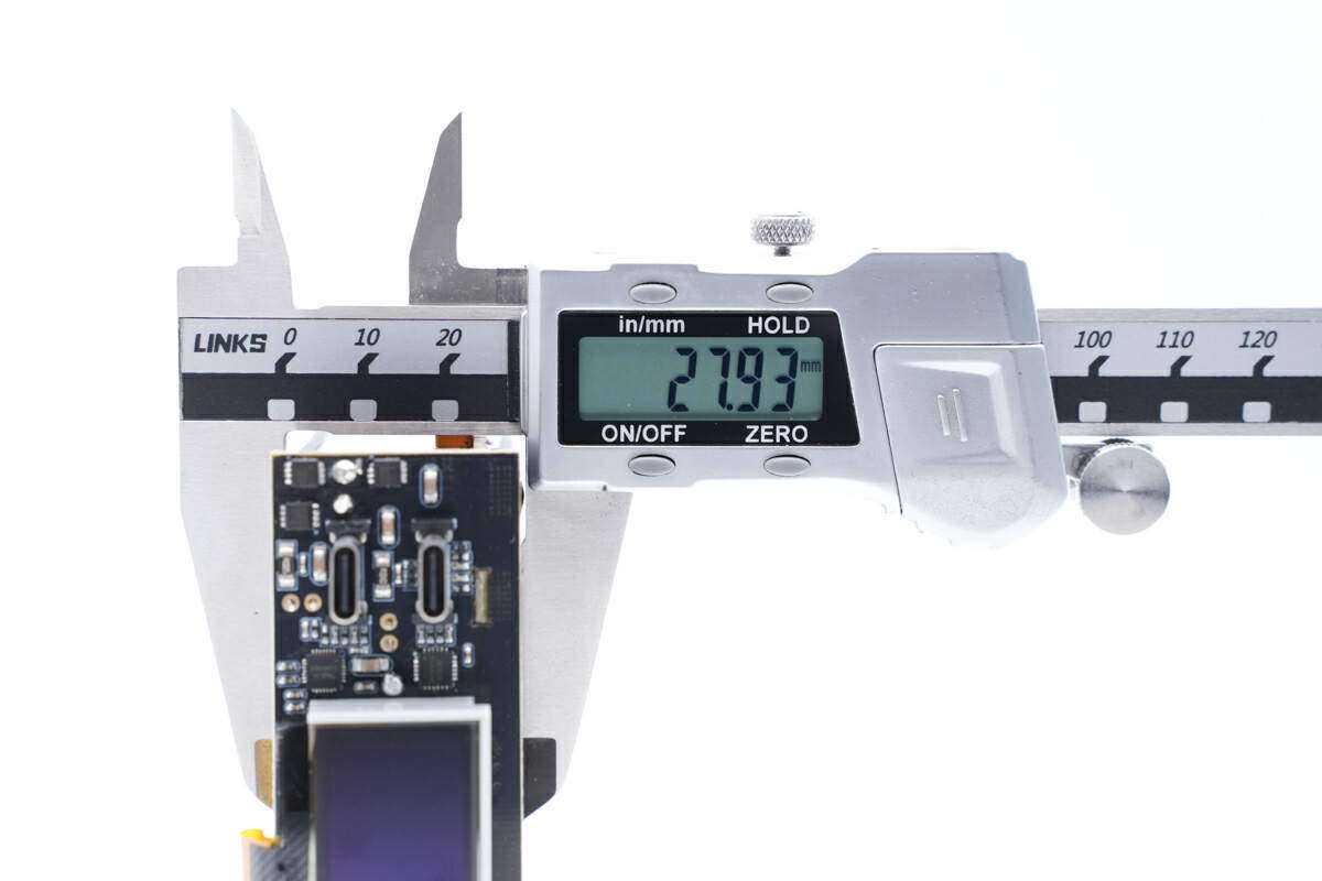 侧面焊接的小板正面焊接贴片按键和三个USB-A接口,在中间为OLED屏幕,用于各个接口的参数显示。
