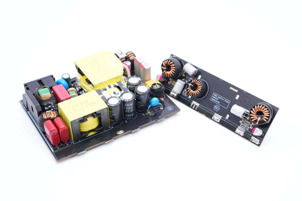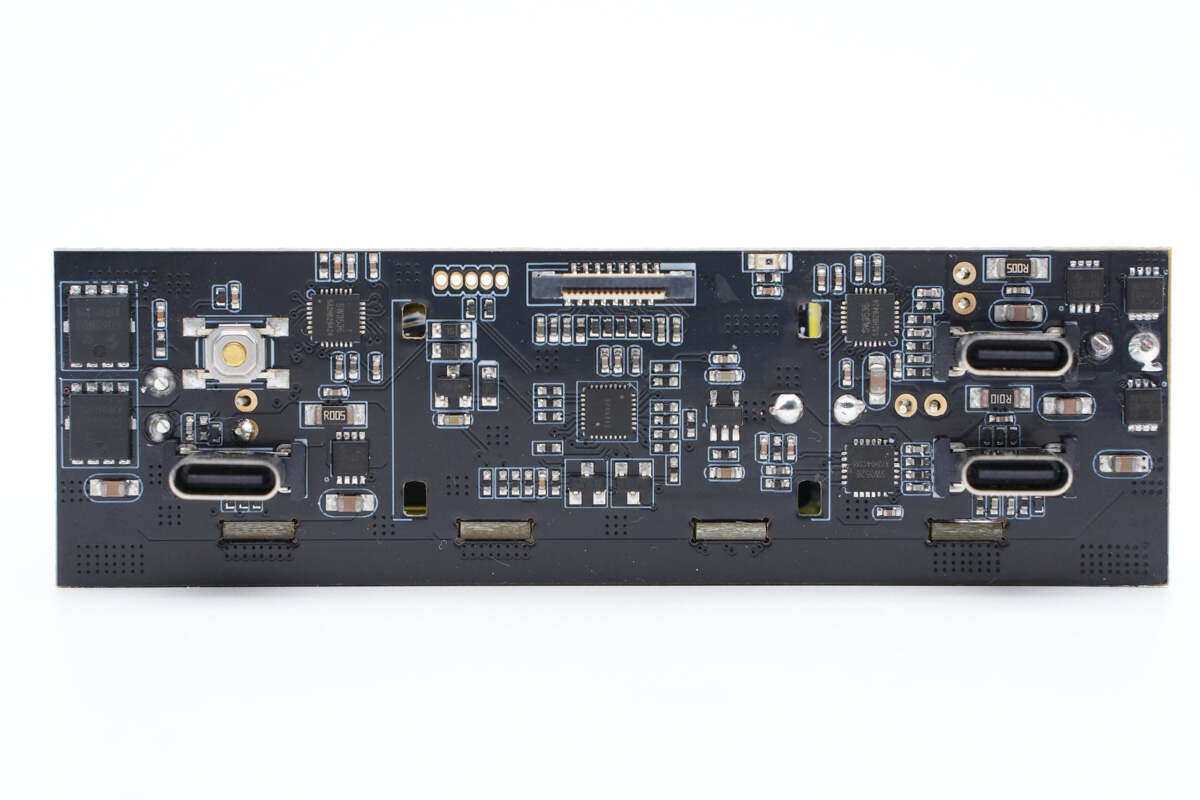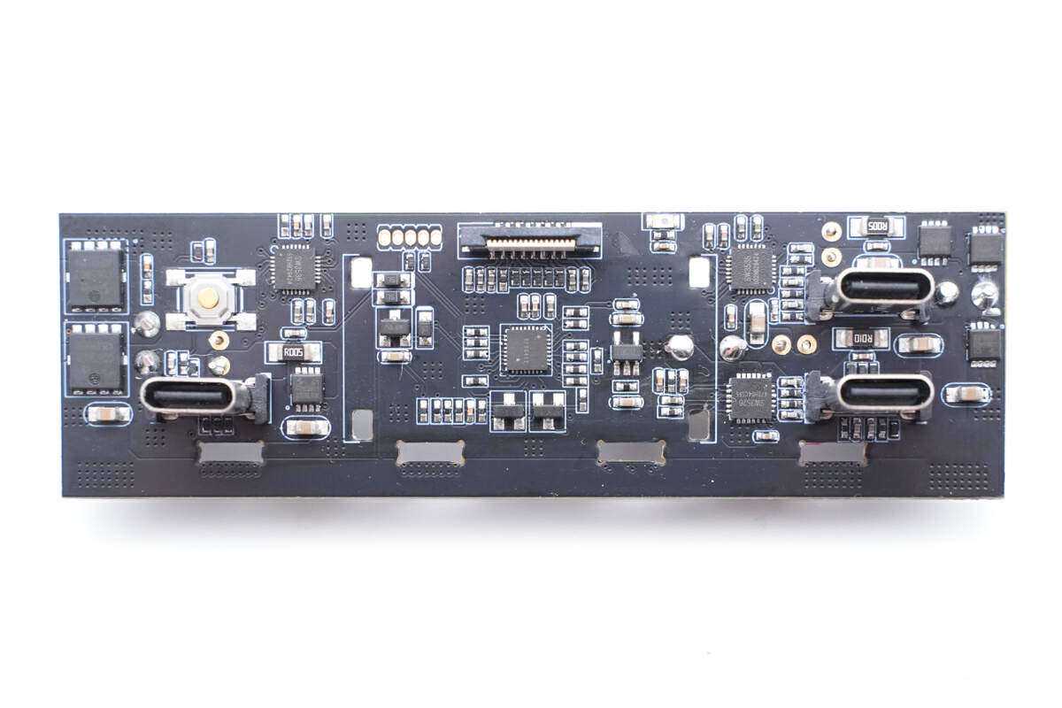 侧面焊接的小板背面焊接四颗滤波电容和三颗降压电感,USB-C母座过孔焊接固定。两块PCB均为沉金处理,具有更好的可靠性和耐腐蚀性。