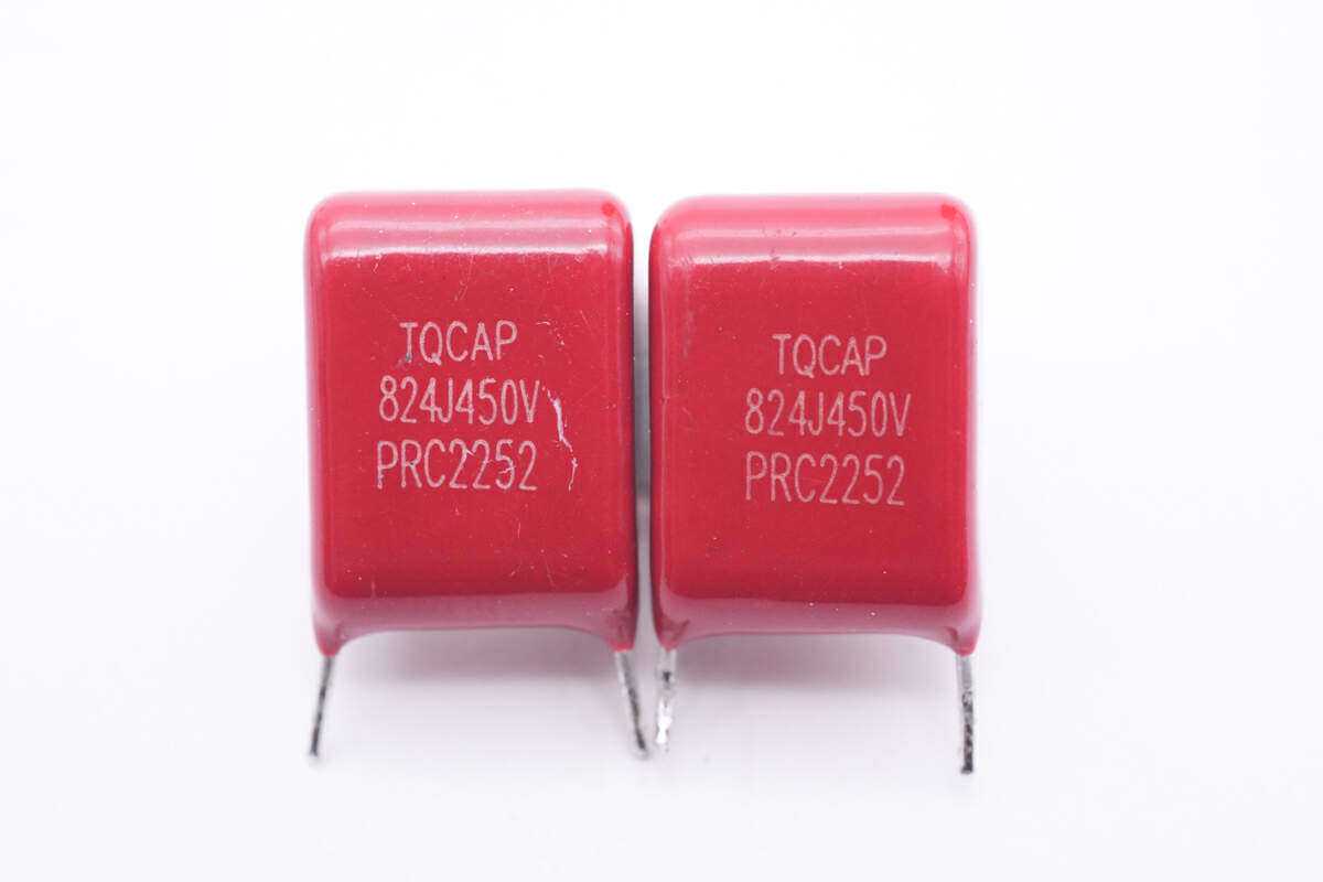 两颗薄膜电容来自TQCAP东莞台强电子,规格为0.82μF450V。