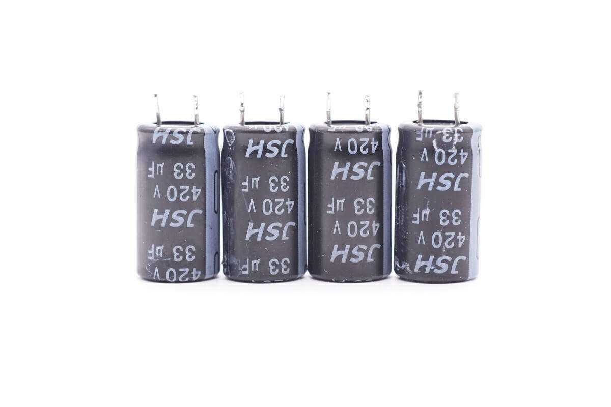 四颗高压滤波电容来自JSH万京源,规格为420V33μF。