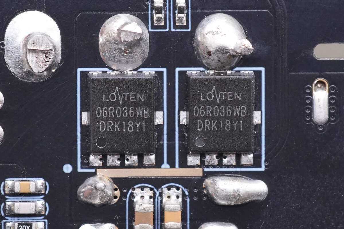 两颗同步整流管来自龙腾,型号LSGN06R036WB,NMOS,耐压60V,导阻3.6mΩ,采用DFN5*6封装。