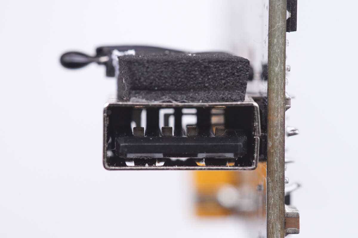 USB-A口母座采用黑色胶芯,过孔焊接。