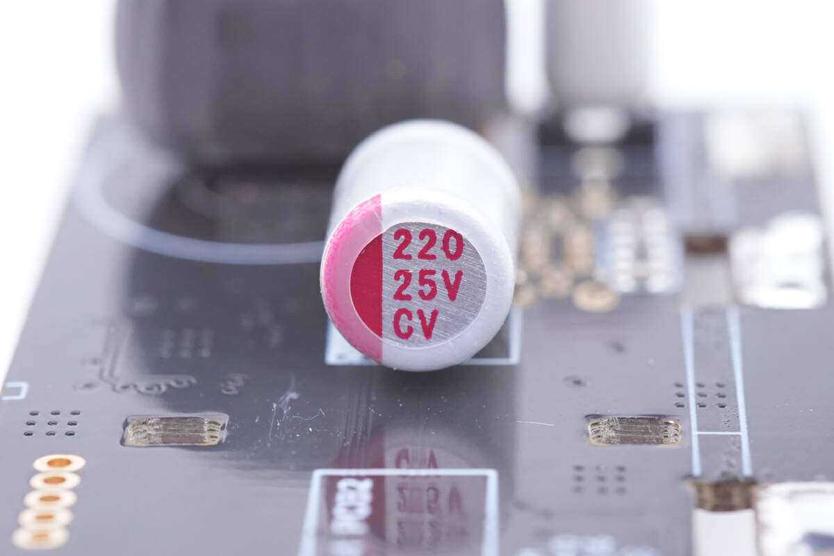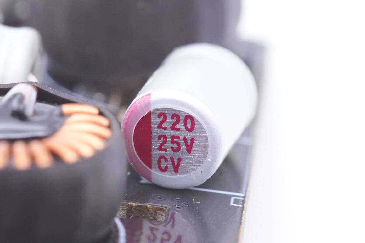 输入滤波电容规格为220μF25V,外套热缩管绝缘。