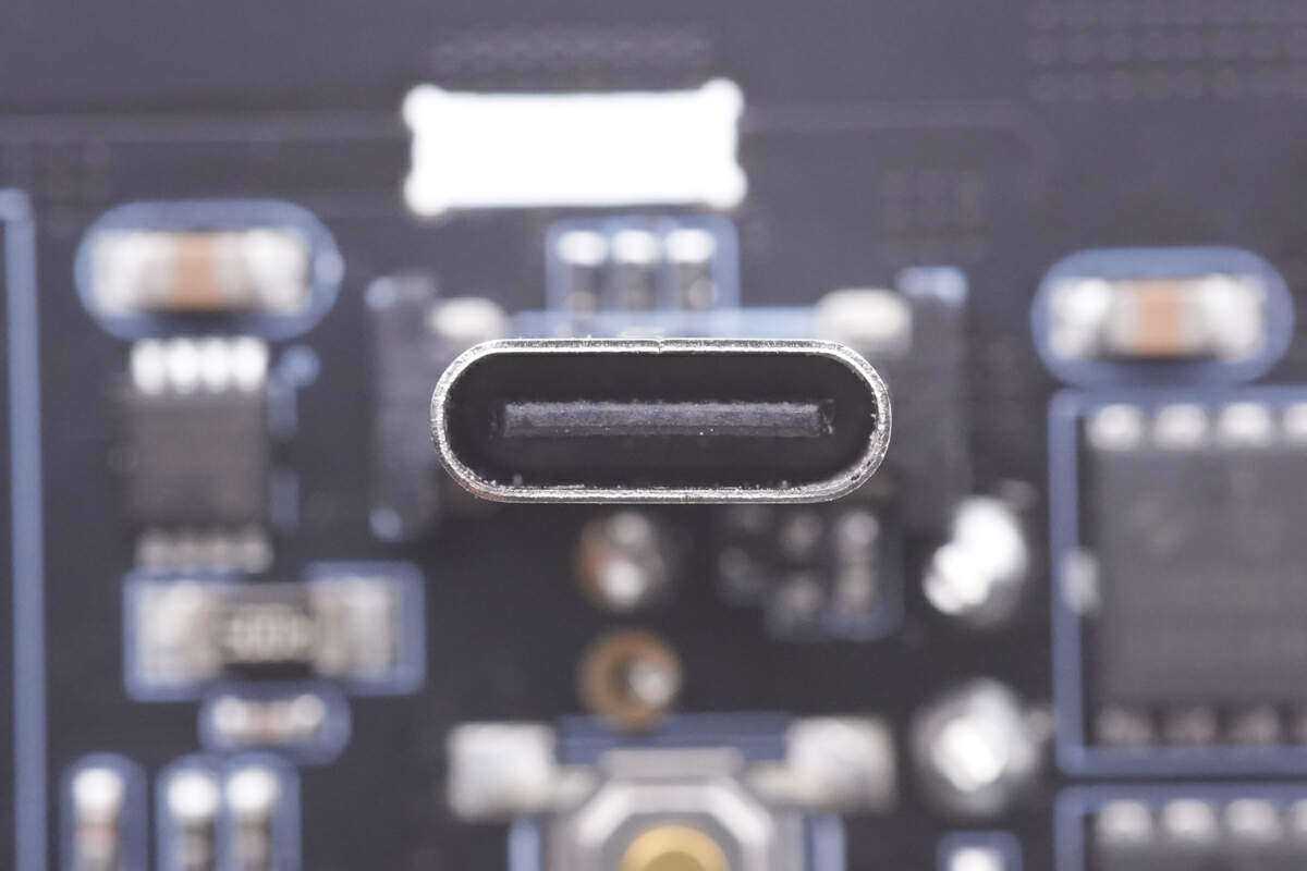 USB-C母座采用过孔焊接固定,黑色胶芯不露铜。