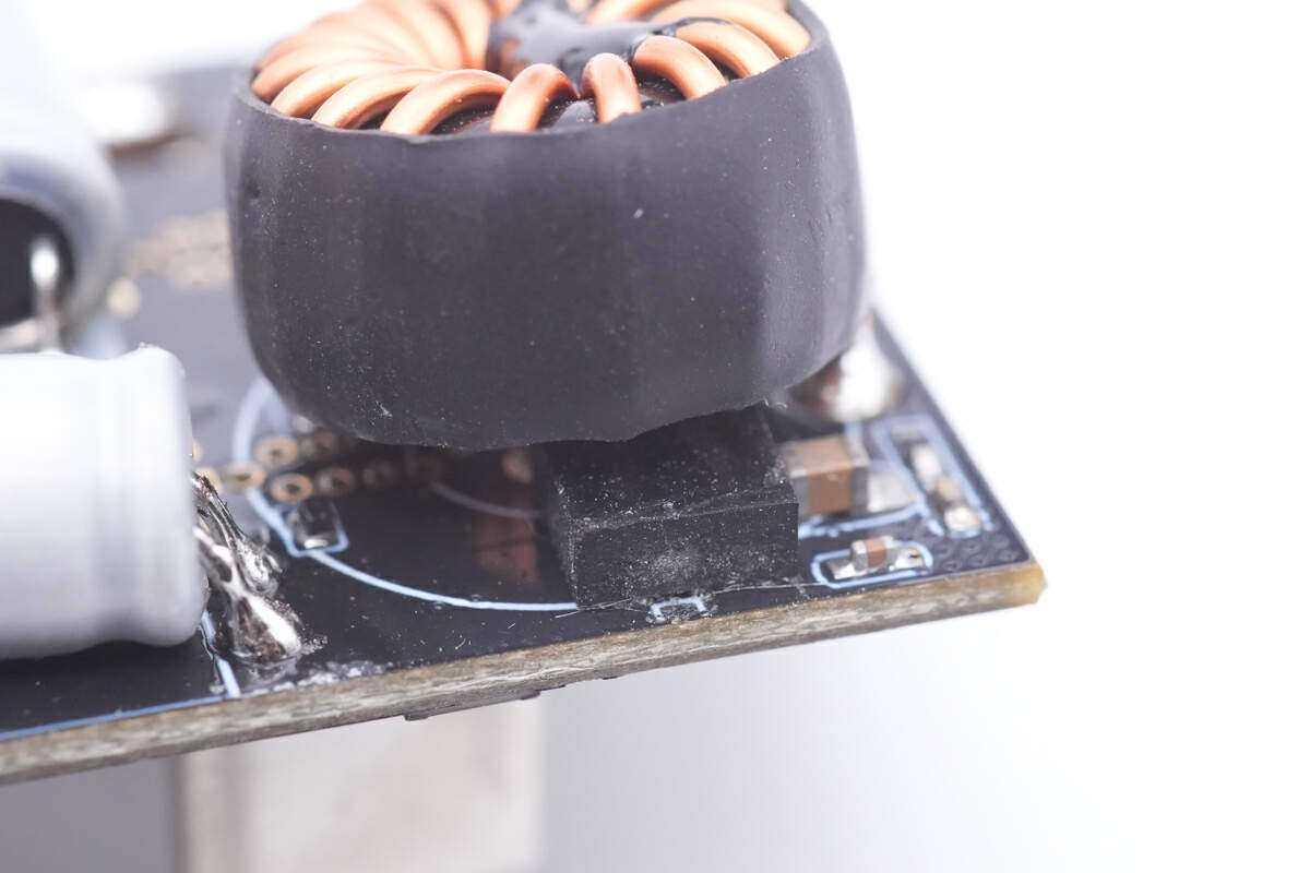 降压电感采用磁环绕制,打胶固定,外套热缩管绝缘。