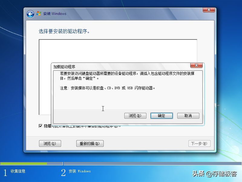 此时由于Windows7没有NVMe驱动,正常是看不到电脑中的固态硬盘的。我们通过优盘加载事先从网上下载好的纯驱动版本(解压):