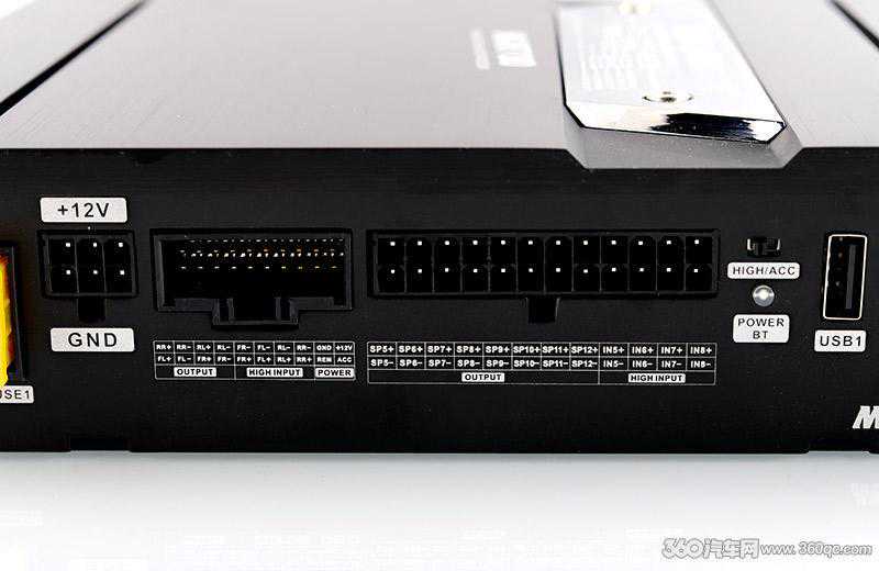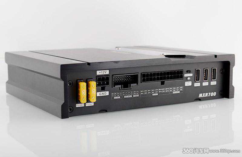 说到底,被誉为小航母,重点还是功能性。对出侧面接线设计,一边是12路RCA信号和光纤同轴蓝牙扩展接口,另一半是电源输入和高电平输入输出信号。从信号输入看,MXR700支持高电平8路输入12路输出,有应对原车多声道系统做全主动分频的能力,12路输出总功率达到1100W,轻松驱动原车高端扬声器以及后装升级的喇叭。