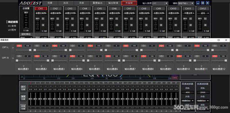 音频处理调校方面,延续日本ADDZEST一贯简约易用直观的界面设计,可选五种音源输入模式和五种辅助音源信号;支持左右通道联调,输入信号混音功能;12声道每路独立31段EQ均衡;滤波可选巴特沃斯、贝塞尔和宁克三种模式,斜率则是从6dB/OCT——48dB/OCT可选;延时精准调谐,从0可调,精细到0.021ms等等专业齐全的调音功能,也能使用手机端的调音和手机端的无损音乐播放界面功能。如果想要更好的操控,MXR700还另配有圆形蓝牙控制器,也支持选购外置液晶显示面板。