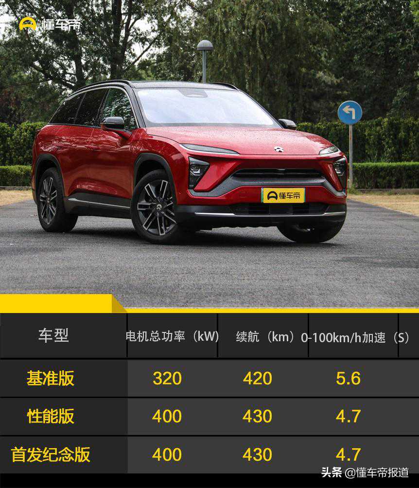 蔚来ES6共推出了三款配置两种动力车型,它们分别为基准版、性能版还有首发纪念版,其中基准版为一种动力(电机总功率为320kW),性能版还有首发纪念版为一种动力(电机总功率为400kW)。而此次试驾车为蔚来ES6首发纪念版车型,它不仅是全系的顶配车型,也是动力最强版本。不过,即使是ES6动力较强的版本相比ES8的电机总功率还是低了80kW。
