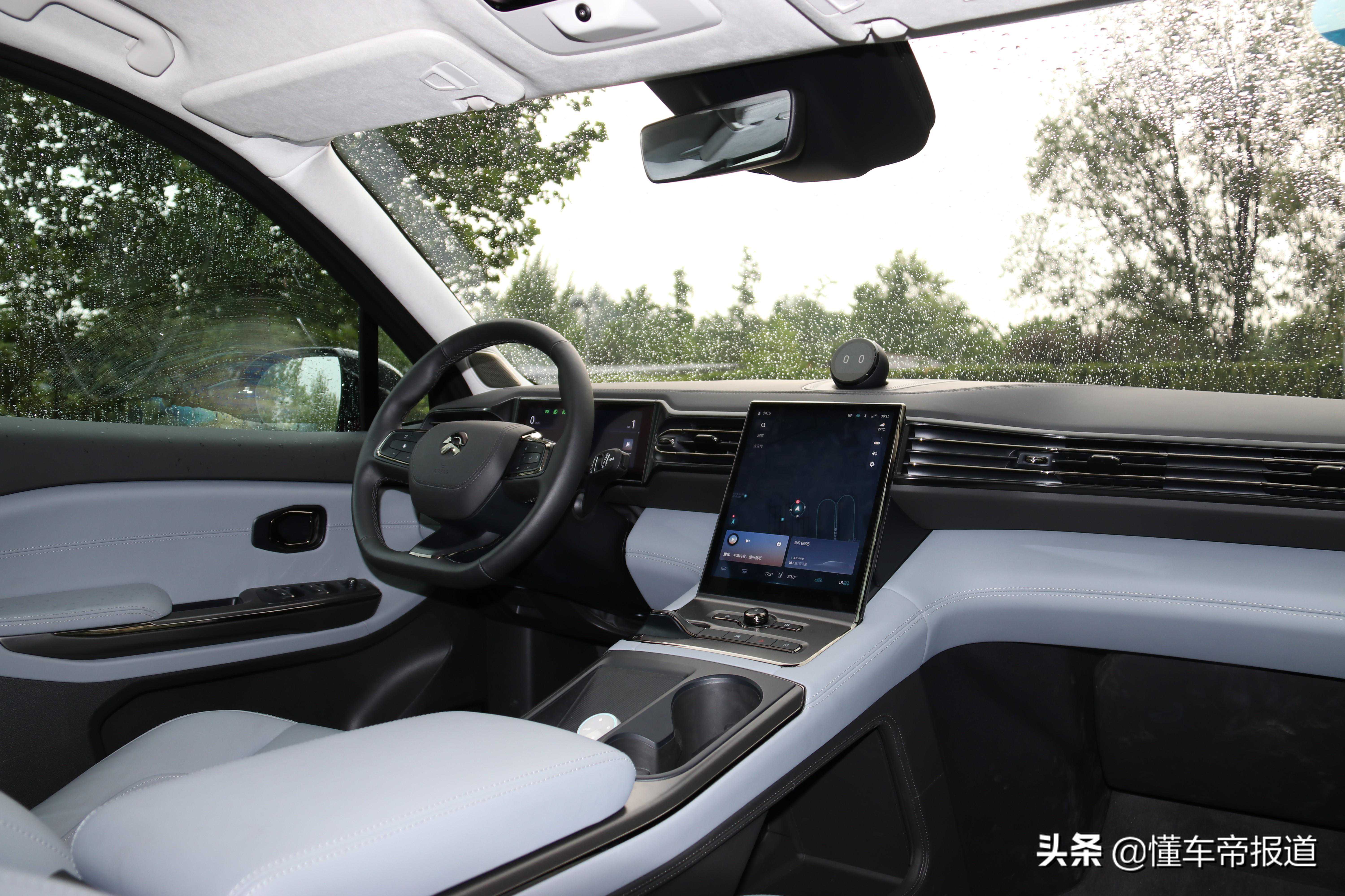 ES6和ES8一样,在中控台配备有一块触控显示屏,而它的尺寸也升级到了11.3英寸,屏幕边框变得更窄,整体视觉效果更好。内部使用了最新的车机系统,用起来比较便捷。这块触控屏支持车辆设置、空调控制、灯光等控制,整体显示效果很清晰。特别是全景影像功能给人印象比较深,清晰度很高。
