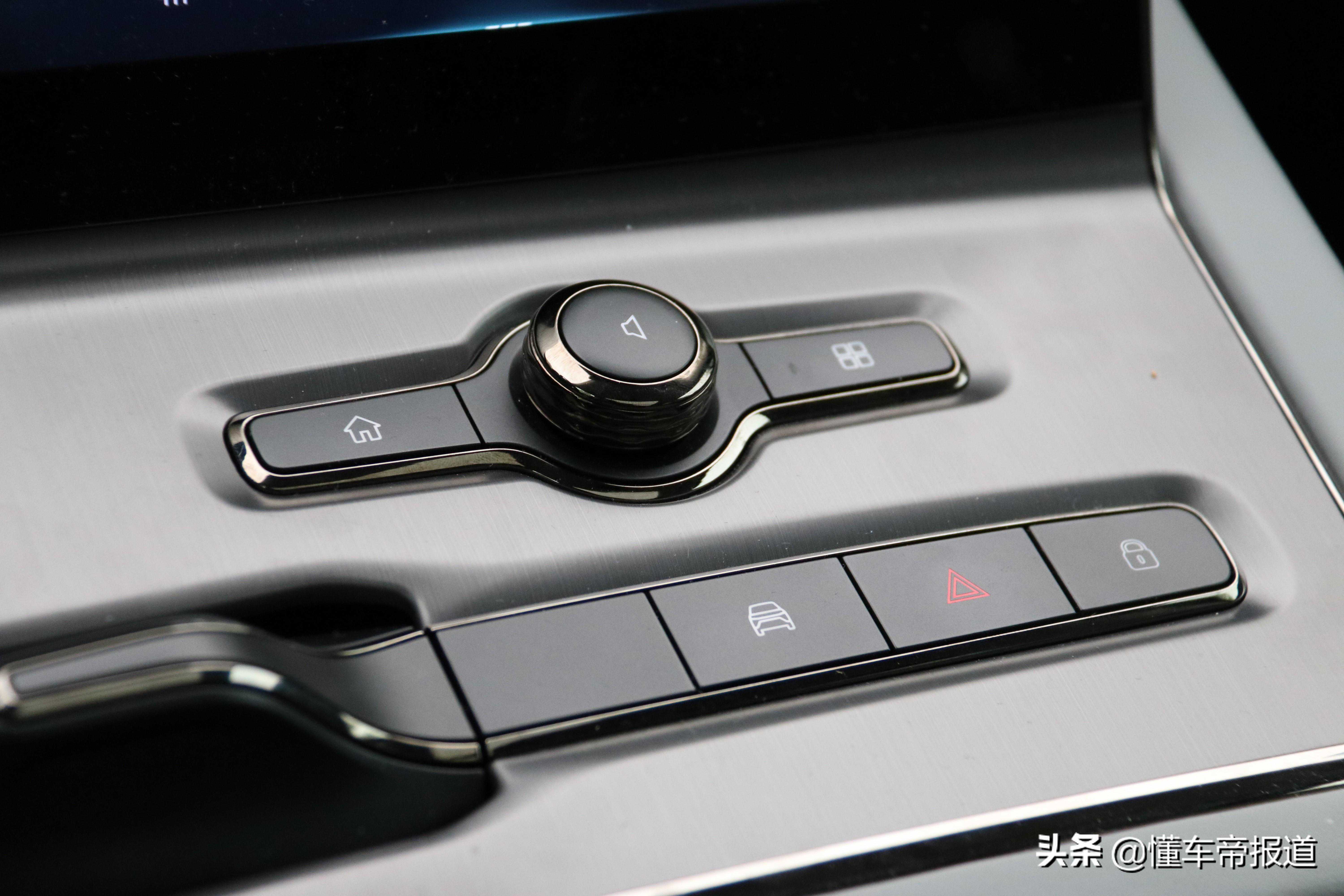 在屏幕下方是物理按键及旋钮,而这也和ES8的按键布局保持一致,整体比较简洁。不过,个人觉得如果把空调控制区也放在这个区域会更好,一定程度上能便于行驶中的盲操作。此外,挡把造型也和ES8保持一致,采用拨动式操作,相比传统燃油车也比较新潮。在其后方为大储物槽,放手机比较不错,还具备无线充电功能。
