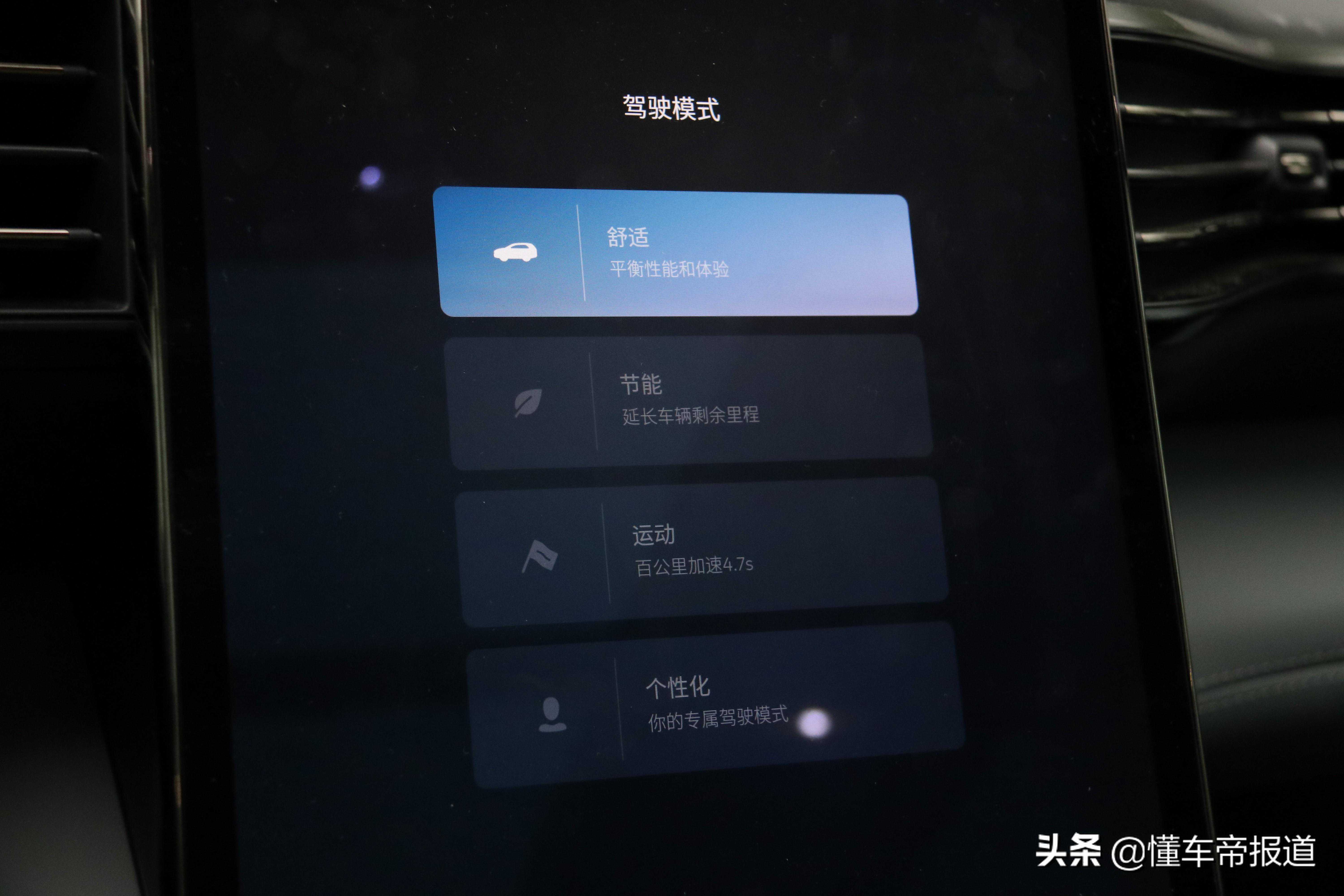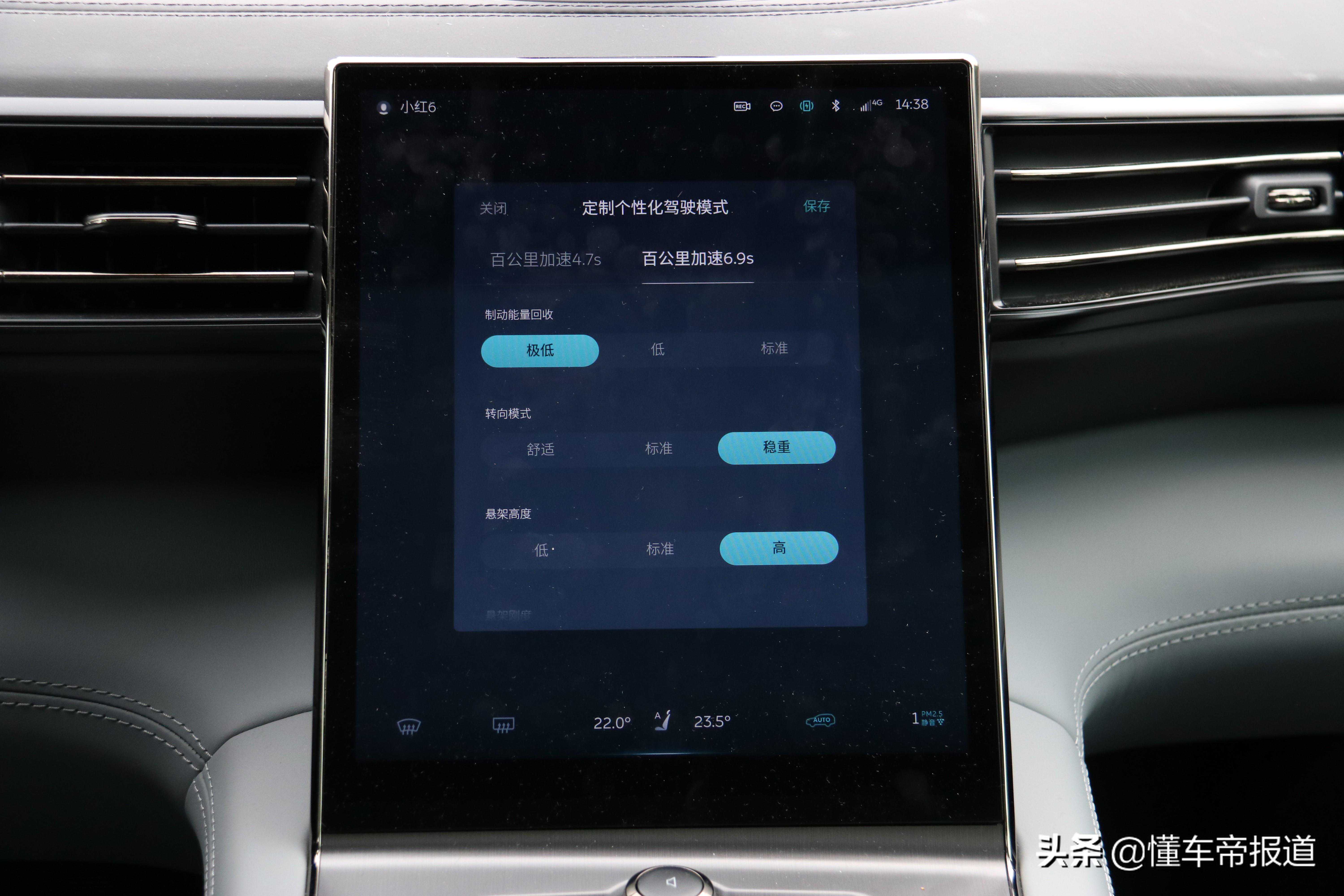 而当你在你享受加速快感时,一旦松开油门,就会有明显拖拽感。我个人感觉这个能量回收力度还是有点猛了,日常低速开基本用不到刹车。即便是在极低的模式下,能量回收还是会让人有拽一下的感觉。如果你开惯了燃油车,还是需要适应一下。