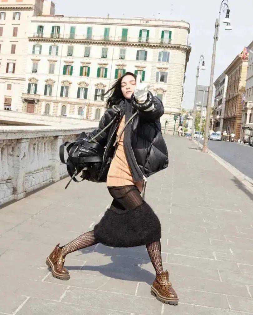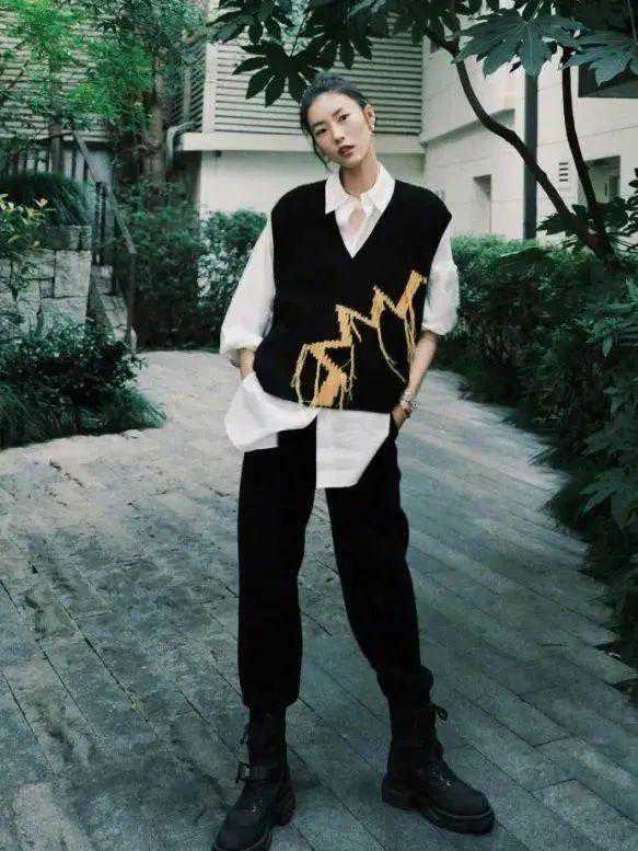 大幂幂还选择稍微厚实的同色登山靴作为点缀,时髦小心思值得拷贝。