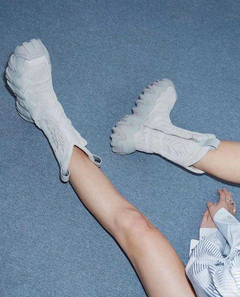 时装博主leeleeann率先演绎,脚上的这双也简直是美貌满分,Monse的大Logo布于鞋身,很有辨识度,黑白撞色和超长鞋带都是这双鞋的亮点!