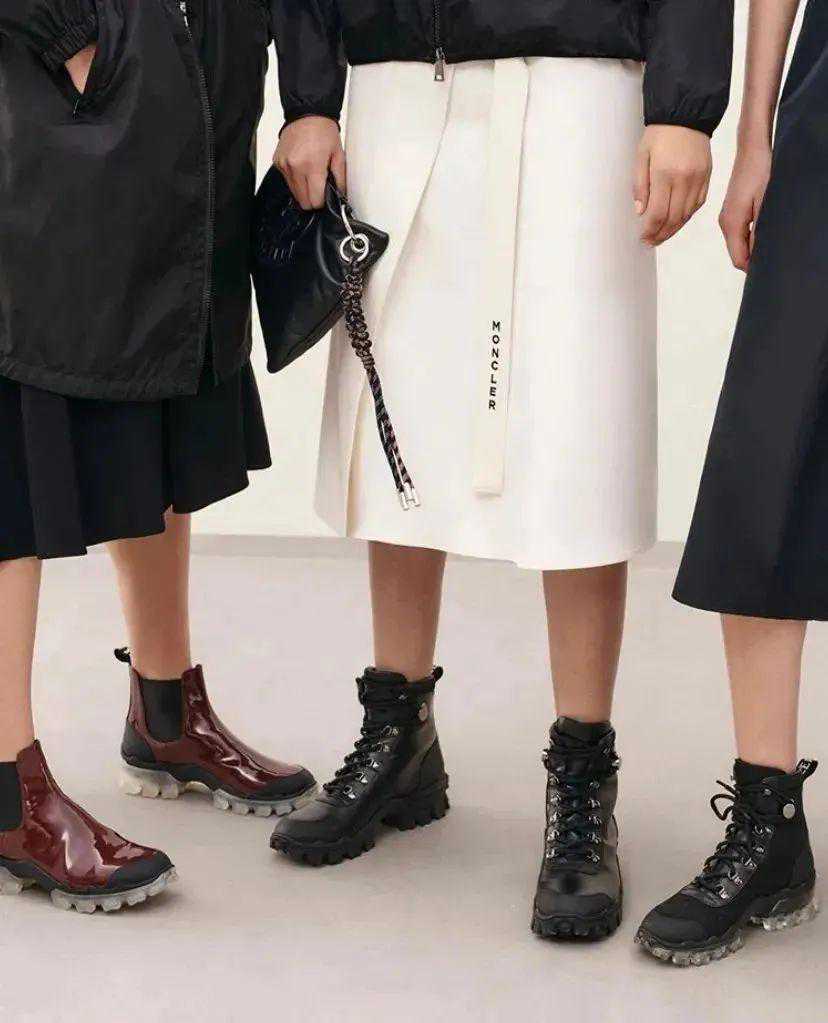 鞋型纤细也算是Moncler的设计特点之一,被分为透明底和黑色底的两种登山靴不仅搭配万能,吸睛度也是绝对满分,让人不得不多看上几眼之后立刻收入囊中!