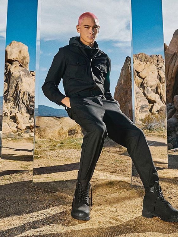 欧豪最近也上脚了一双,飞行员夹克和牛仔裤在登山靴的加持下更加霸气,尽显酷帅型格。