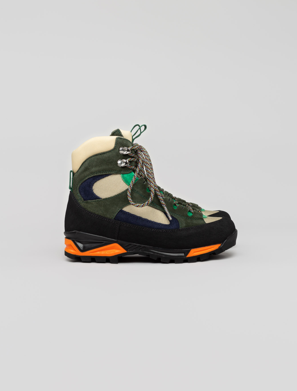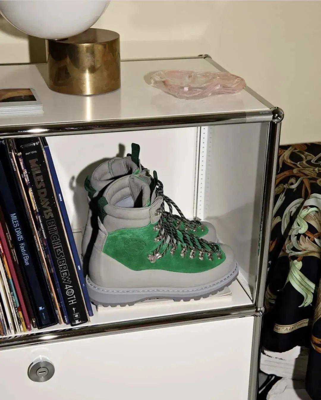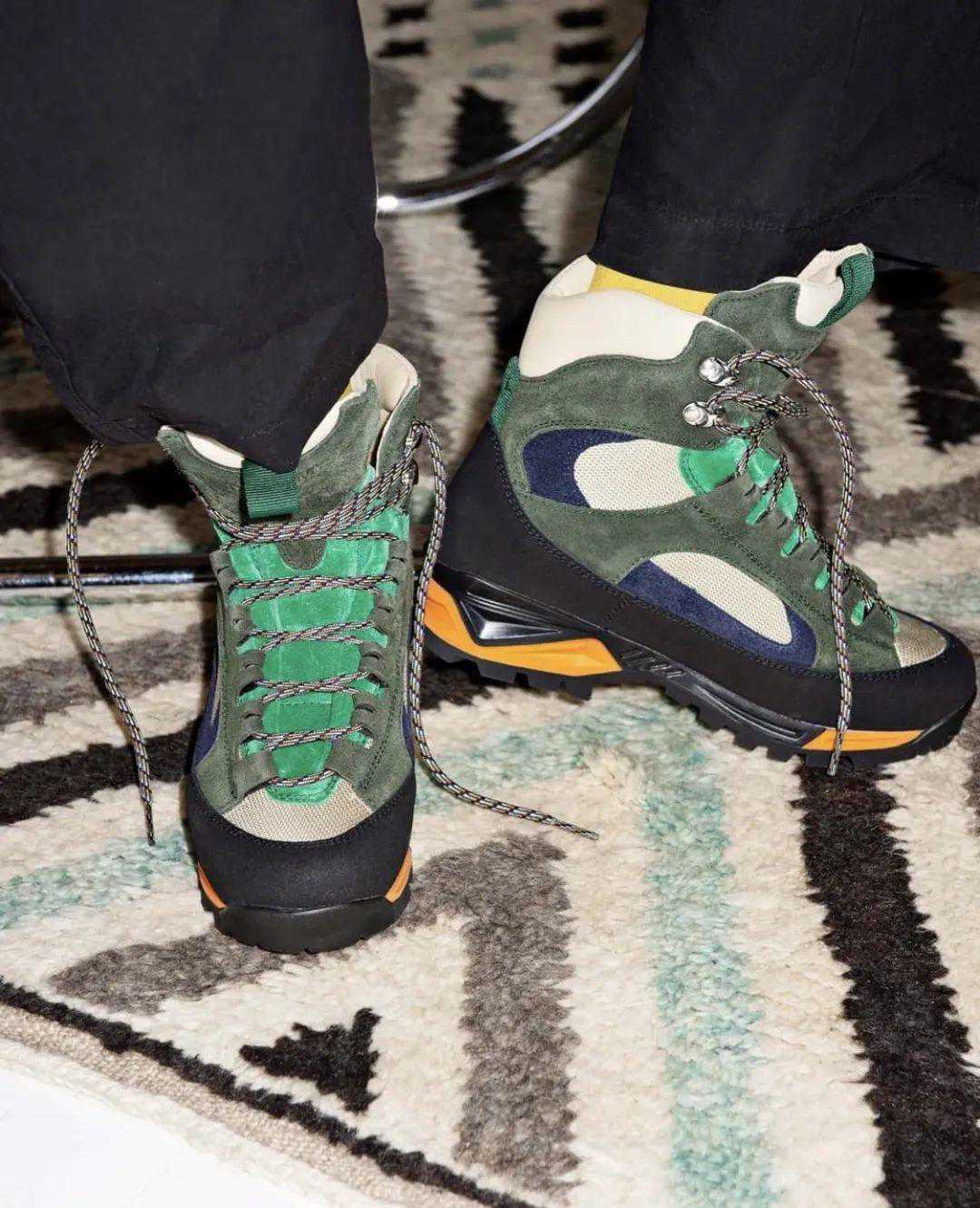 除此之外,这次联名系列中还推出了这款与墨绿色撞色的登山靴,方便搭配又好穿,喜好深色系穿搭的姐妹们一定要考虑入手一双!