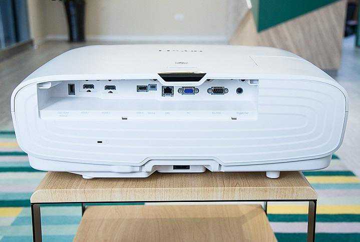 投影仪所提供的接口主要都集中在机身后面,有提供了两组与一组D-Sub影音输入、两组USBType-A、一组MiniUSB以及RJ-45网络端口,另外还有设置了RS232与Triggetout控制传输接口。