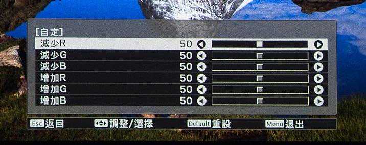 若是有需要进一步调整更细节的色温呈现,在自定义选单内也可以让使用者自己调整RGB的参数。