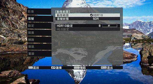这款投影仪除也同时支持了HDR10与HLG两种HDR影像标准,而且两个HDR标准也都有提供了进一步的明暗设置选项,最多可提供16个等级的调整。