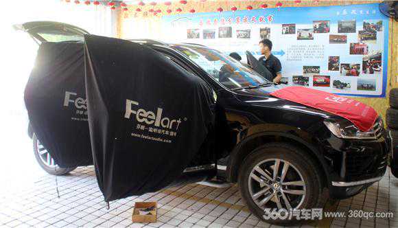 施工之前,先将车子车门盖好防护罩,以免不小心的刮蹭。