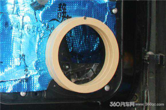 隔音工作做好了,下面就是喇叭的安装,为了喇叭能出来更好的音质,先安装木质喇叭垫圈,一来有利于喇叭的固定,二来可以提升音乐的空间感。