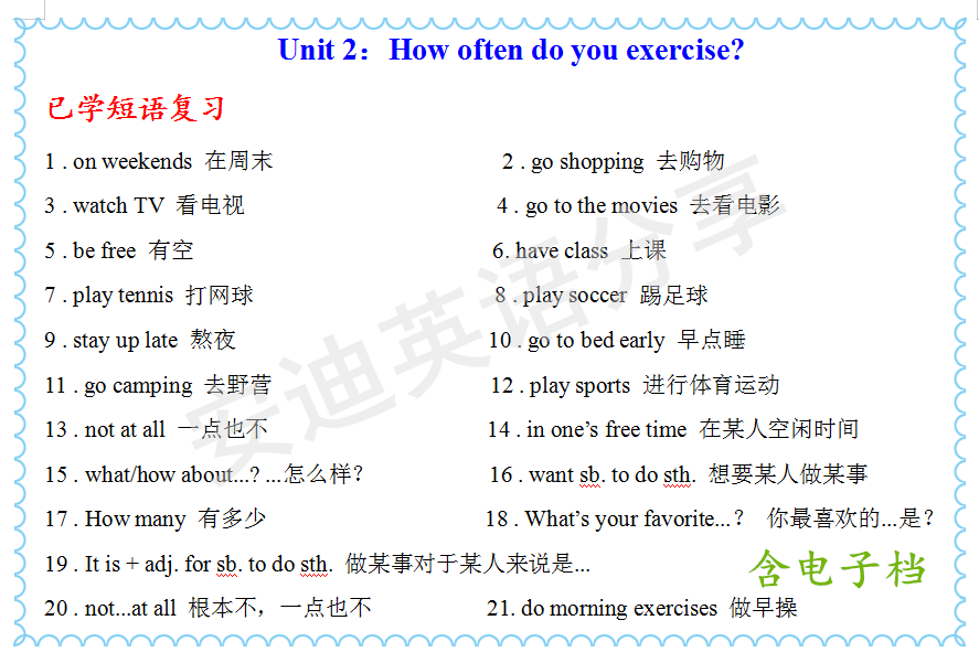 本单元需要掌握短语: