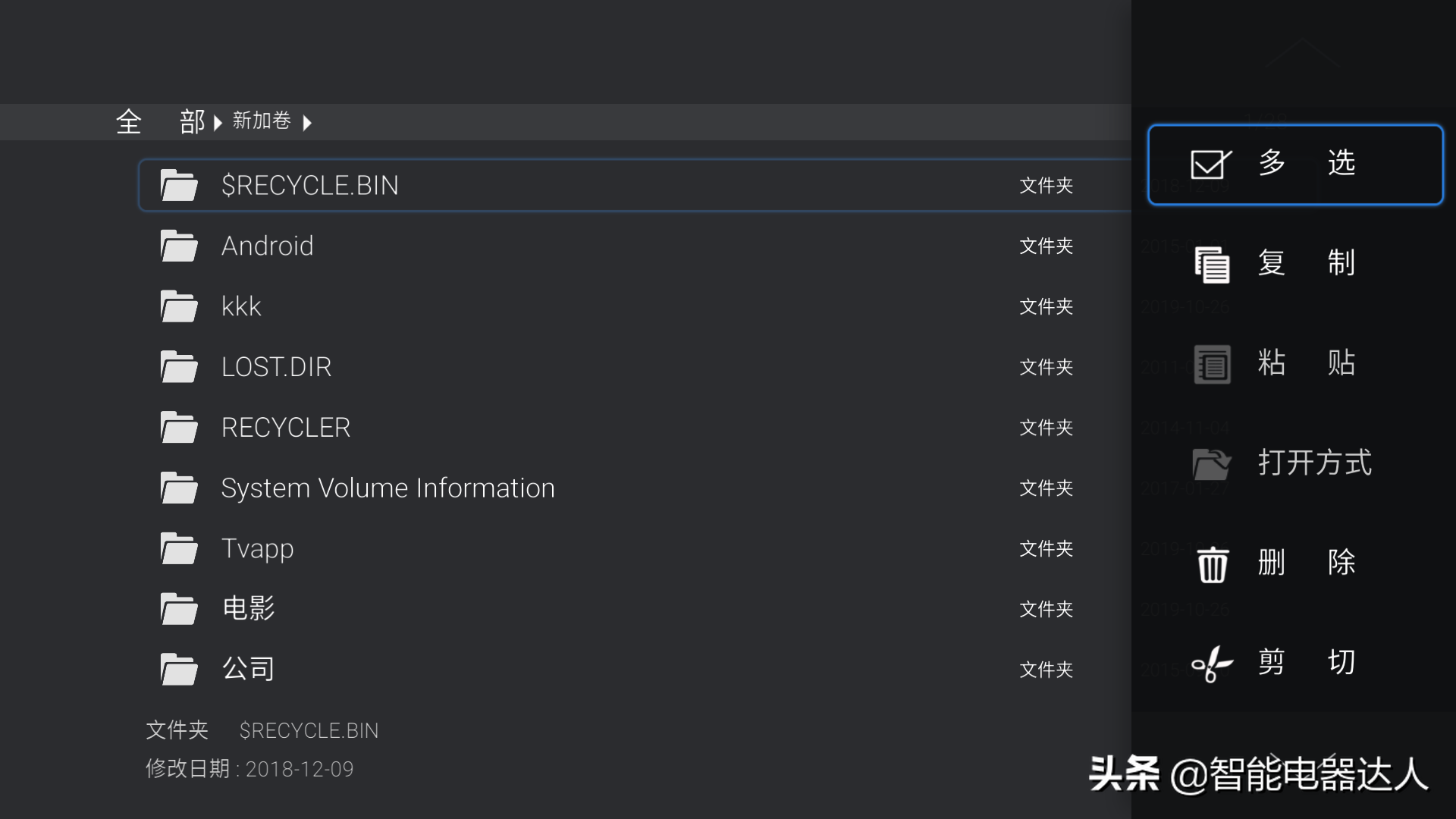 支持创建歌单功能,先在左侧菜单栏添加歌单名,然后对着某首音乐长按OK键可弹出“添加到歌单”的按键,硬盘内的曲目太多,自定义歌单功能可以减少查找常听音乐的过程。