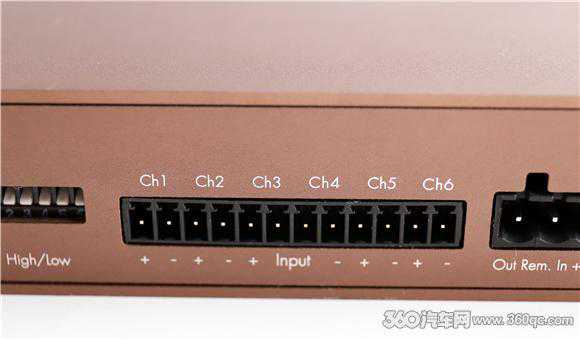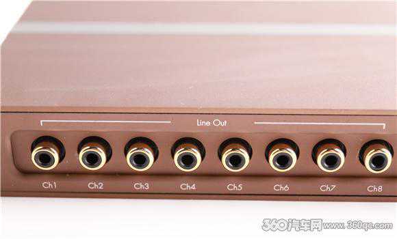 后侧面板上则是8路RCA输出端子和两路AUX输入端子,再往右是第1-4声道、第5-6声道以及AUX三组输入灵敏度可调旋钮。这种灵活可选的接线方式,让PLUG&PLAYDSP可以根据车主的需求,与其他音响器材灵活搭配,组成主动二分频+低音或是主动三分频+低音的音响系统。