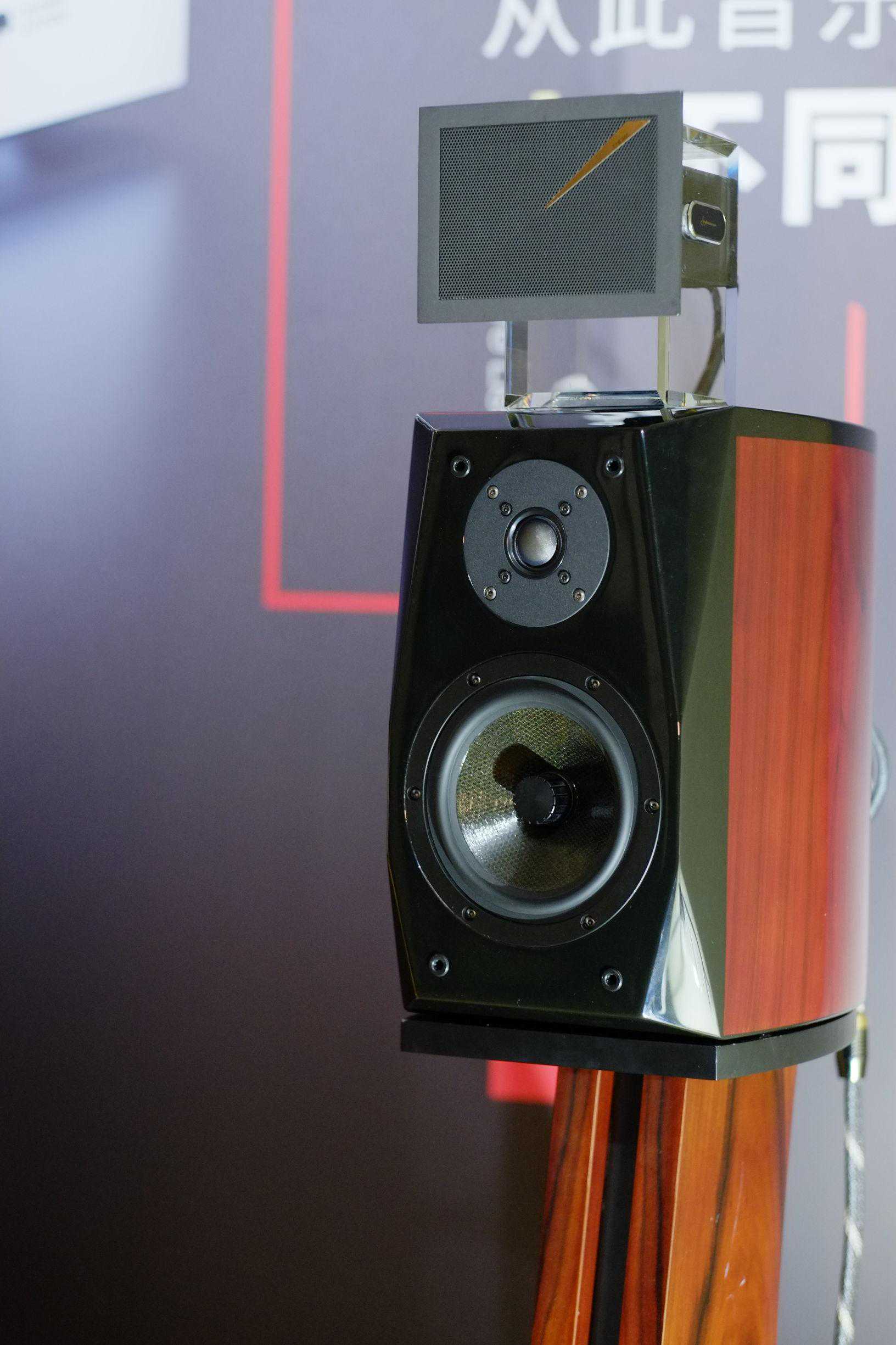 来自新加坡的新晋品牌创世纪品牌展出旗下音箱产品,从腔体到脚架均为全透明设计,小小的尺寸能量感颇强。