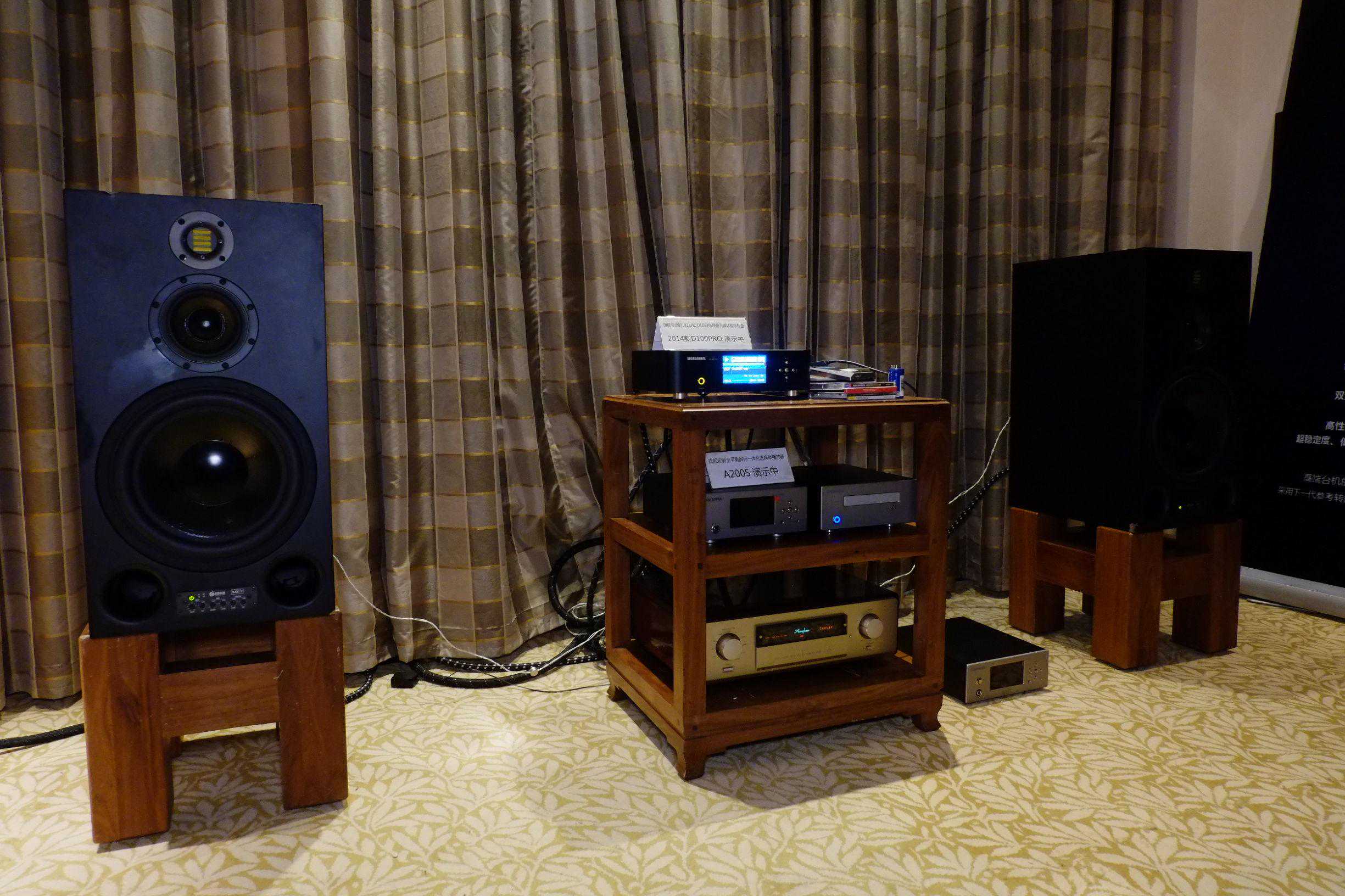 唯一让三耳君两顾展房等候皇帝位试听的组合。美国BricastiM1解码前级一体机搭配M28单声道后级,驱动ATCSCM50ASLT喇叭在整个展会中声音独树一帜,精准的声音还原和凌厉的动态非常突出。坦然,这套系统当然未算展会中素质最强大的,但确实被向来Hi-Fi和专业类音频器材同好的三耳君所喜欢,在展会中游走多时再听这种声音会感觉冲击力更强。
