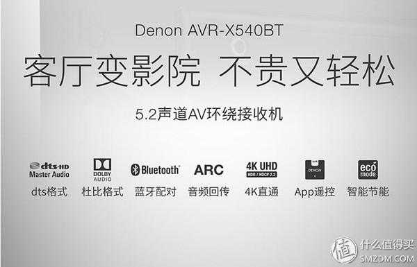 天龙(DENON)AVR-X540BT音响音箱家庭影院5.2声道AV功放机支持4K杜比DTSUSB蓝牙黑色2480元京东
