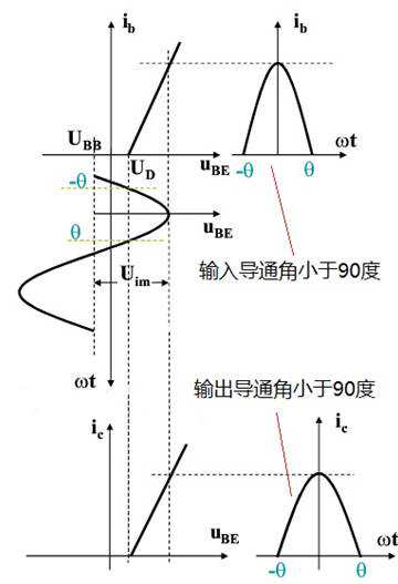 上面讲的是电子管的线性放大状态。所谓线性放大,是指晶体管和电子管工作状态在各自的特性曲线之内,和输入信号相同按比例放大,也称甲类放大。但是短波功率末级放大器一般都工作在丙类或甲乙类,负载一般是LC谐振回路,导通角小于90度,经验值告诉我们,一般导通角在70度时,效率最高。这样的设计会使放大器的工作效率高,功率大且功耗小。比如单只FU-13电子管,工作在甲类时,一般输出不到60瓦。但如果工作在丙类时,输出可达600到700瓦,而且所需电源动力大大下降,效率大大提高。怎样才能使电子管和晶体管放大器工作在丙类状态哪?这就需要在电路设计时,确定管子的工作状态,通过调整晶体管的负偏置,电子管的负栅压数据,使管子工作在特性曲线的线性与非线性之间(见原理图)。
