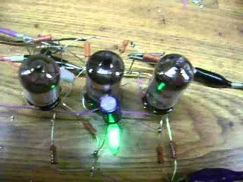 电子管的一般结构。一般的电子管是由抽成真空的玻璃管作外壳,内部有一些特殊金属材料制作的电极。电极分为:阳极(屏极)、阴极、栅极。栅极里面又分有栅极、帘栅极、控制栅极等;阴极又分有旁热式阴极和灯丝阴极两种。