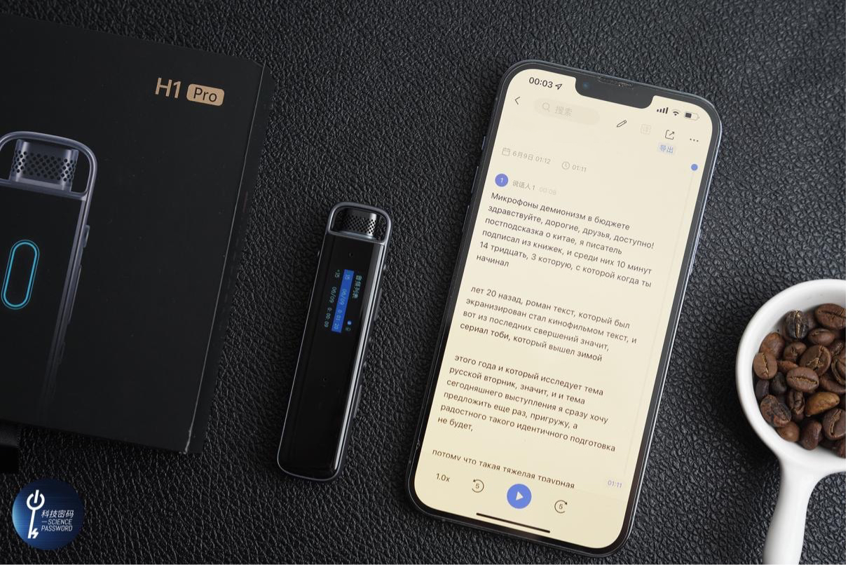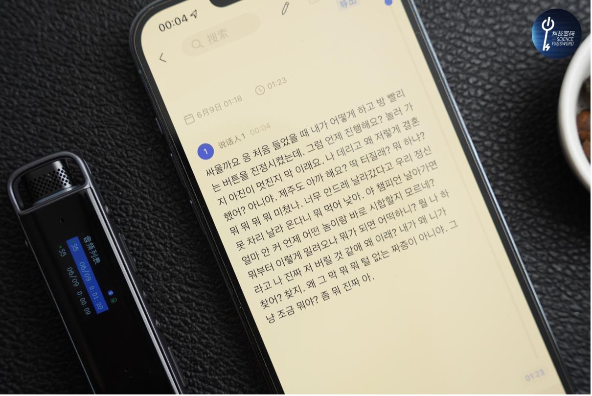 这里我们测试了英文、俄语、韩语的录音转写,测试结果很不错,讯飞智能录音笔H1Pro能够很好的记录。