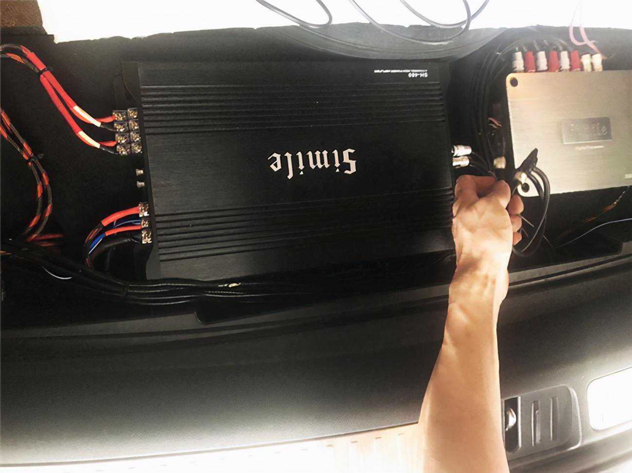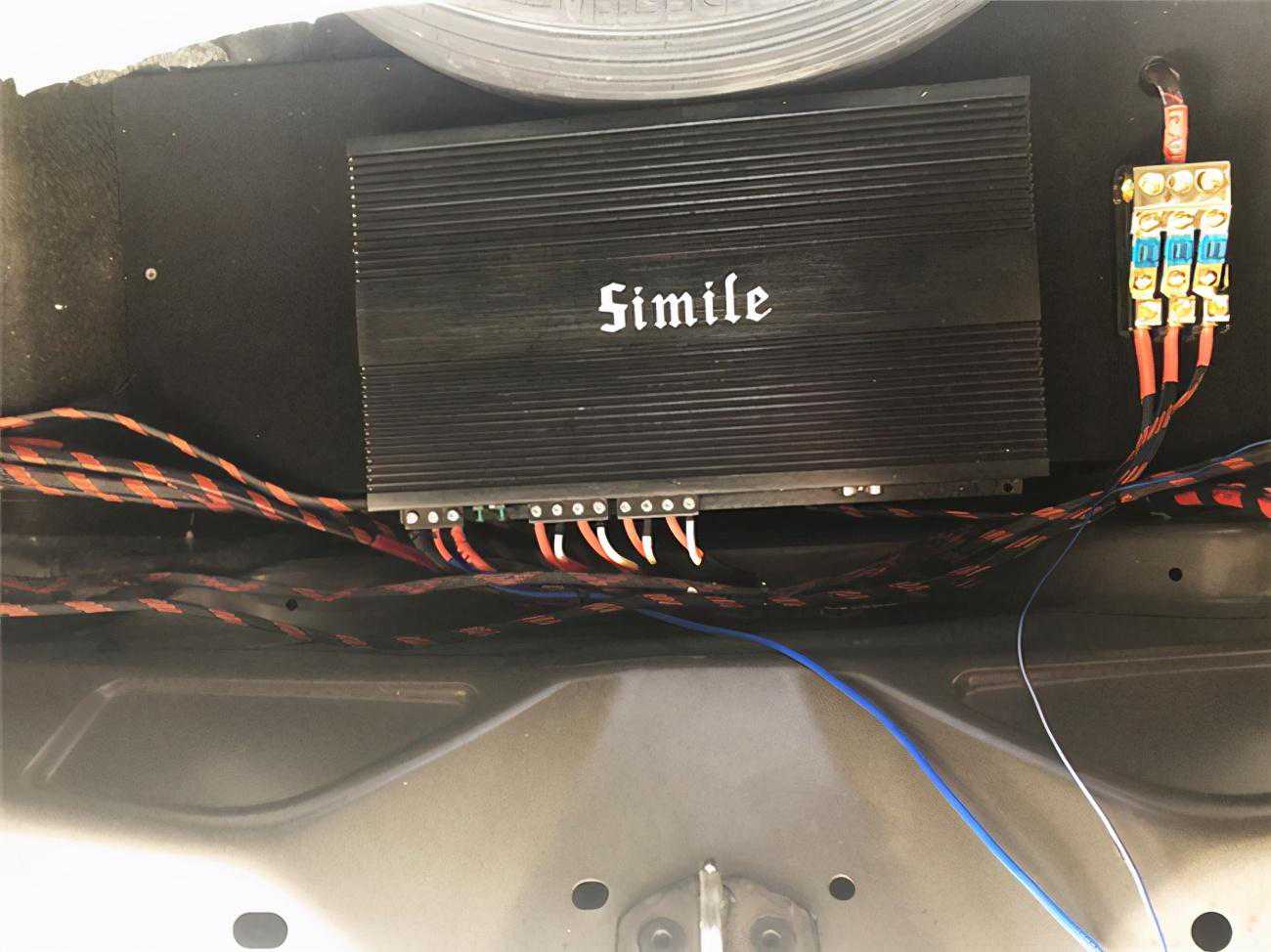 为了弥补原车主机功率供给不足的问题,技师为音响系统,添加了两台诗蔓功放,为喇叭提供充足的功率输出,使声音对细节的刻画更加清晰、富有质感。并且为了减少空间的占用,技师还通过吊装的方式,将功放安装在了尾箱的底部。