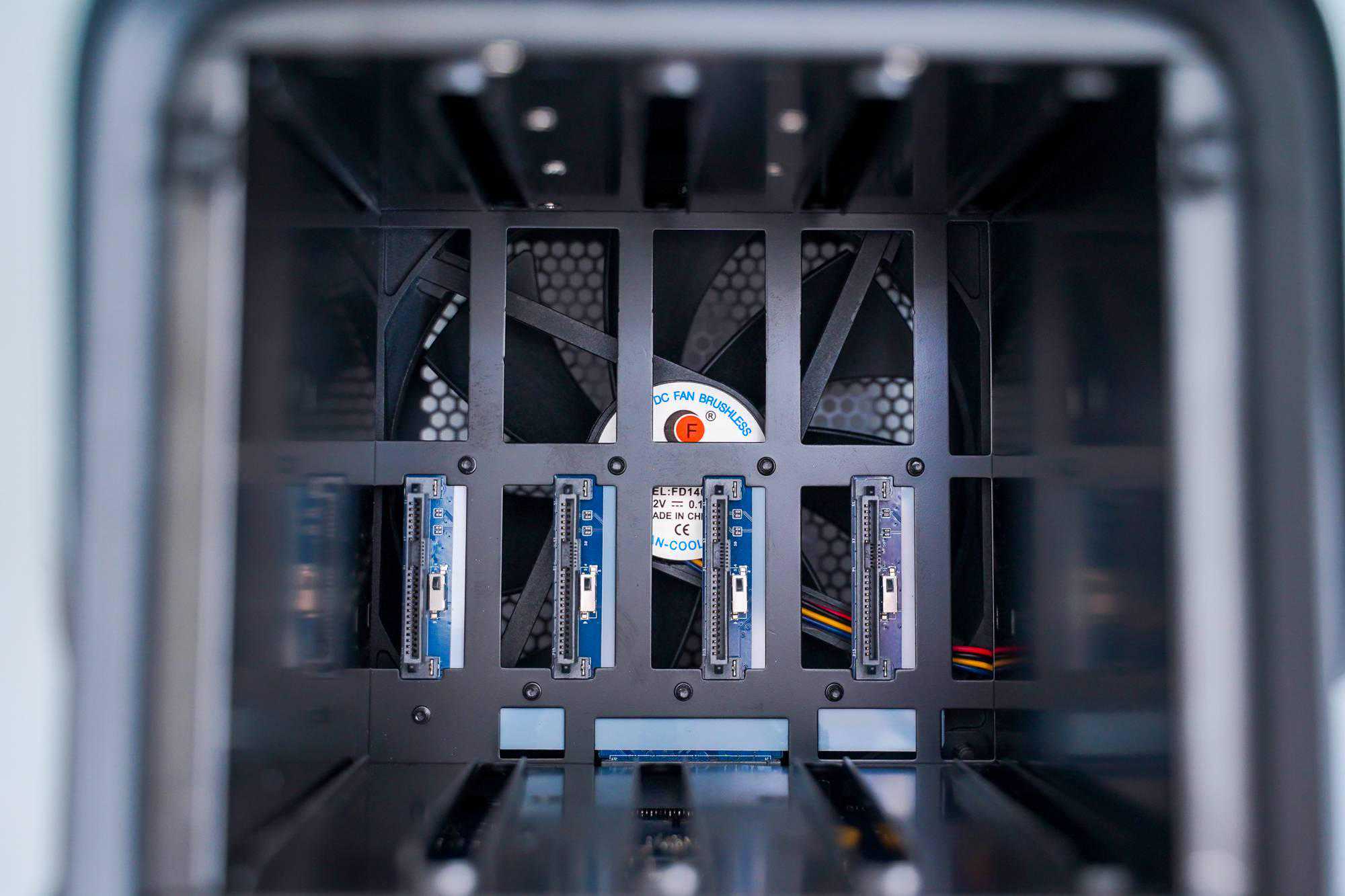 这个温度表现,得益于极空间Z4背后较大的散热风扇,以及每块硬盘之间都有很好的散热间隙: