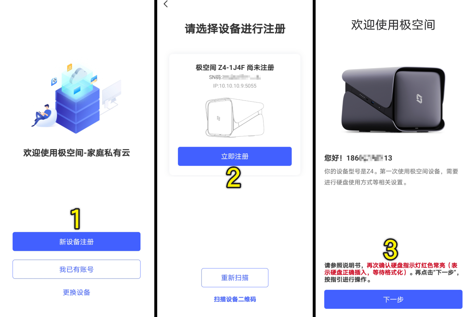 注册的时候,会自动检测到局域网内的极空间NAS,我们选择立即注册即可: